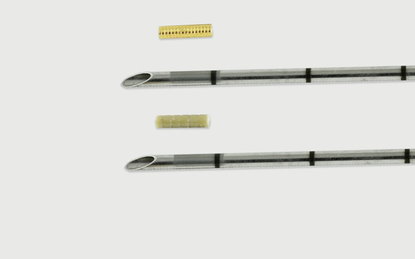 - Distal ucuna altın ve PEEK® işaretleyicisi yüklenmiş olan steril iğne